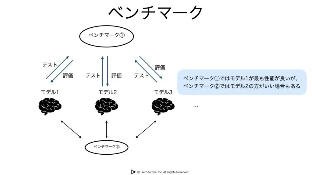 ベンチマークとは、モデルの性能を評価し、比較するための指標となるものです。