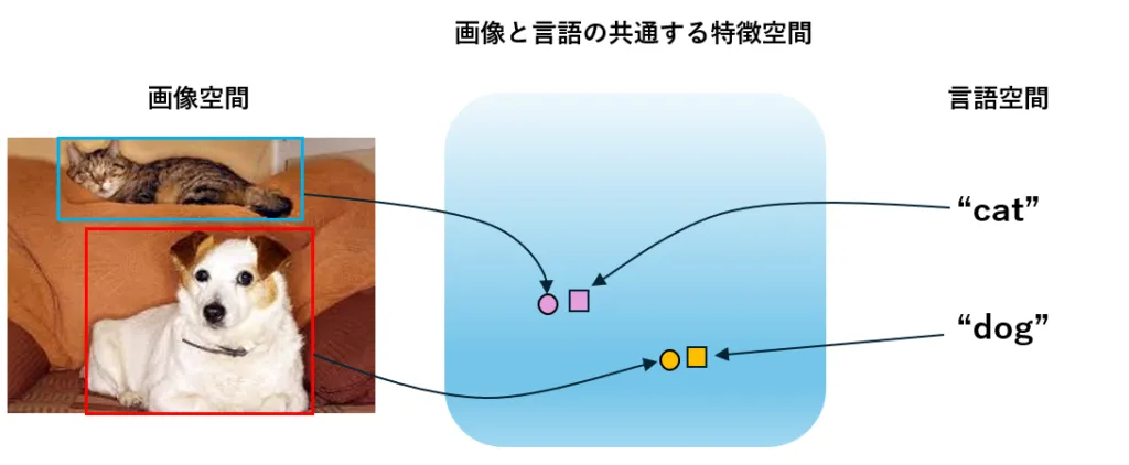 画像と自然言語の特徴を共通する特徴空間に射影するエンコーダを学習することで、従来のアプローチでは困難だったタスクを高い精度で解決できる点が特徴です。