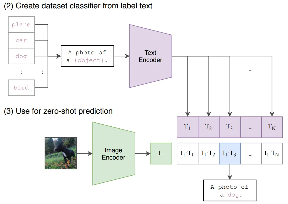 CLIPは、画像とテキストを共通の特徴空間に射影するエンコーダを持っています。これにより、新しいカテゴリに対しても、以下の手順で対応することができます: